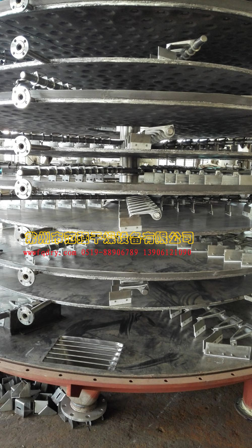 盤(pán)式連續(xù)干燥機(jī)PLG系列真空盤(pán)式連續(xù)干燥機(jī)是一種高效的傳導(dǎo)型連續(xù)干燥設(shè)備。其獨(dú)特的結(jié)構(gòu)和工作原理決定了它具有熱功當(dāng)量效率高、能耗低、占地面積小、配置簡(jiǎn)單、操作控制方便、操作環(huán)境好等特點(diǎn),廣泛適用于化工、醫(yī)藥、農(nóng)藥、食品、飼料、農(nóng)副產(chǎn)品加工等行業(yè)的干燥作業(yè)。在各行業(yè)使用實(shí)踐中深受好評(píng)。現(xiàn)生產(chǎn)制造常壓、密閉、真空三大類(lèi)型。1200、1500、2200、3000四各規(guī)格,S(碳鋼)、B(接觸物料部分均勻不銹鋼)、C(在B的基礎(chǔ)上,增加蒸汽管路,主軸及支架為不銹鋼,筒體和頂蓋內(nèi)襯不銹鋼)。三種材質(zhì)、干燥面積4-180M2,共幾百種型號(hào)的系列產(chǎn)品,并能提供與之相配套的種子選手輔助設(shè)備,可滿足用戶(hù)對(duì)各種物料進(jìn)行干燥的需要。 設(shè)備特點(diǎn): PLG系列真空盤(pán)式連續(xù)干燥機(jī)濕物料自加料器連續(xù)地加到盤(pán)式干燥機(jī)上部第一層干燥盤(pán)上,帶有耙葉的耙臂作回轉(zhuǎn)運(yùn)動(dòng)使耙葉連續(xù)地翻抄物料。物料沿指數(shù)螺旋線渡過(guò)干燥盤(pán)表面,在小干燥盤(pán)上的物料被移送到外緣,并在外緣落到下方的大干燥盤(pán)外緣,在大干燥塔上物料向里移動(dòng)并從中間落料口落入下一層小干燥盤(pán)中。大小干燥盤(pán)上下交替排列,物料得以連續(xù)地流過(guò)整個(gè)干燥器。中空的干燥盤(pán)內(nèi)通入加熱介質(zhì),加熱介質(zhì)形式有飽和蒸汽、熱水和導(dǎo)熱油,加熱介質(zhì)由干燥盤(pán)的一端進(jìn)入,從另一端導(dǎo)出。已干物料從盤(pán)式干燥機(jī)最后一層干燥盤(pán)落到殼體的底層,最后被耙葉移送到出料口排出。濕份從物料中逸出。由設(shè)在頂蓋上的排濕口排出,真空型盤(pán)式干燥器的濕氣由設(shè)在頂蓋上的真空泵抽出。從底層排出的干物料可直接包裝。通過(guò)配加翅片加熱器、溶劑回收冷凝器、袋式除塵器、干料返混木結(jié)構(gòu)、引風(fēng)機(jī)等輔機(jī),可提高其干燥的生產(chǎn)能力,干燥膏糊狀和熱敏性物料,可方便地回收溶劑,并能進(jìn)行熱解和反應(yīng)操作。 (一)調(diào)控容易、適用性強(qiáng) 通過(guò)調(diào)整料層厚度、主軸轉(zhuǎn)速、耙臂數(shù)量、耙葉型蕘尺寸可使干燥過(guò)程達(dá)到******。 盤(pán)式干燥機(jī)每層干燥盤(pán)皆可單獨(dú)通入熱介質(zhì)或冷介質(zhì),對(duì)物料進(jìn)行加熱或冷卻,物料溫度控制準(zhǔn)確、容易。 物料的停留時(shí)間可以精確調(diào)整。 盤(pán)式干燥機(jī)物料流向單一、無(wú)返混現(xiàn)象,干燥均勻,質(zhì)量穩(wěn)定,不需要混合。 (二)操作簡(jiǎn)單、容易 盤(pán)式干燥機(jī)的開(kāi)車(chē)、停車(chē)操作非常簡(jiǎn)單。 停止進(jìn)料后,傳送物料垢耙葉能很快地排空干燥器內(nèi)的物料。 盤(pán)式干燥機(jī)通過(guò)特殊性的大規(guī)格檢視門(mén)的視鏡,可以對(duì)設(shè)備內(nèi)進(jìn)行很仔細(xì)的清洗和觀察。 (三)能耗低 料層很薄,主軸轉(zhuǎn)速低,物料供關(guān)這系統(tǒng)需要的功率小,電耗少。 盤(pán)式干燥機(jī)以傳導(dǎo)熱進(jìn)行干燥,熱效率高,能量消耗低。 (四)操作環(huán)境好,可回收溶劑,粉塵排放符合要求 常壓型:由于設(shè)備內(nèi)氣流速度低,而且設(shè)備內(nèi)濕度頒布上高下低,粉塵很難浮到設(shè)備頂部,所以頂部排溫口排出的尾氣的尾氣中幾乎不含有粉塵。 密閉型:配備黨溶劑回收裝置,可方便地回收載濕氣體中的有機(jī)溶劑。溶劑回收裝置簡(jiǎn)單,回收率謝,對(duì)于易燃、易爆、有毒和易氧化的物料,可用氮?dú)庾鳛檩d濕氣體進(jìn)行半路循環(huán),使之安全操作。特別適用于易燃、易爆、有毒物料的干燥。 (五)安裝方便、占地面積小 盤(pán)式干燥機(jī)整體出廠,整體運(yùn)輸,只需吊裝就位,安裝定位非常容易。 由于干燥盤(pán)層立式布置,立式安裝,既使干燥面積很大,占地面積也很小 技術(shù)參照表: