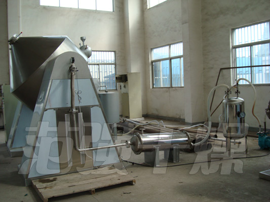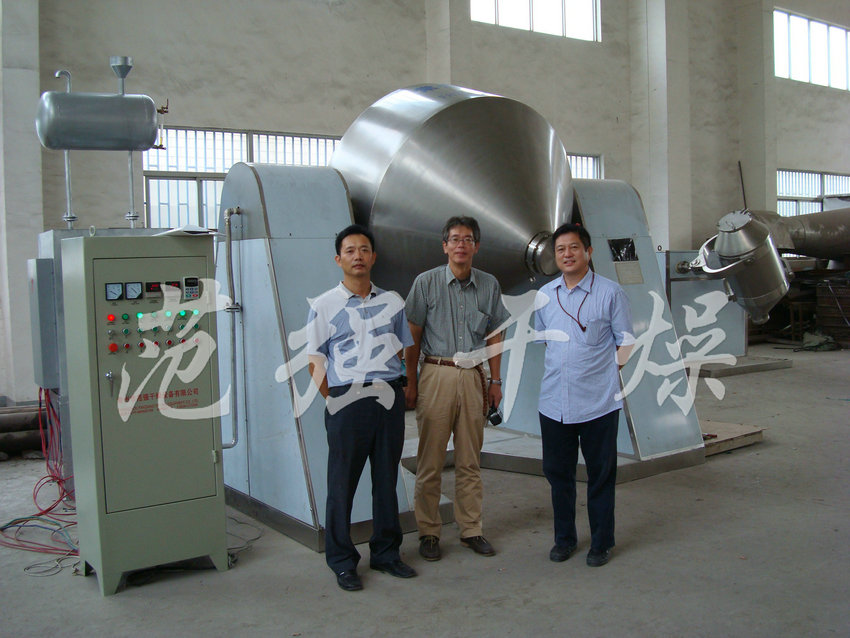 ◎雙錐回轉(zhuǎn)真空干燥機在密閉的夾層中通入熱能源(如熱水,低壓蒸汽或?qū)嵊?,熱量經(jīng)內(nèi)殼傳給被干燥物料。