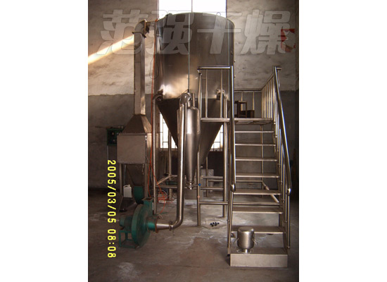 中藥浸膏噴霧干燥機采用全封閉形式,所有部件均采用不銹鋼制造,配有三級凈化裝置,過濾后的空氣達十萬級要求。筒體與頂部裝有冷壁裝置,使壁溫<80℃,干燥塔內(nèi)裝有氣刷掃塔裝置。經(jīng)該機干燥后的中藥浸膏粉,不會出現(xiàn)焦化變質現(xiàn)象,大大增加了收粉率(95%以上),而且不會產(chǎn)生混藥現(xiàn)象和粘壁現(xiàn)象。